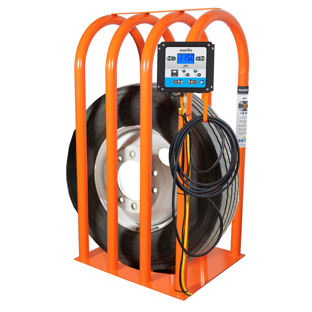 De complete bandenkooi set omvat al de bandenvul uitrusting die u in uw vrachtwagenbandenbedrijf nodig hebt. Voor het snel en precies oppompen van vrachtwagen- en busbanden met een buitendiameter van maximaal 1,19 m. De automatische bandenpomp kan 4 meeteenheden (psi, bar, kPa, kg/cm2) aangeven en beschikt over een overdruksysteem, een LCD-display en achtergrondverlichting om u te helpen de banden exact op de juiste spanning te brengen. Een luid geluidssignaal klinkt zodra de gewenste bandenspanning is bereikt. Bied uw werknemers goede bescherming aan bij het oppompen van vrachtwagen- en busbanden: gebruik gecertificeerde MARTINS-veiligheidskooien - die voldoen aan de vereisten van CE en DGUV - BGR 157 normen. Met hun superieure materialen en afwerking zijn de bandenkooien en bandenvul apparatuur van MARTINS de beste en veiligste keuze op de markt. Lees de instructies zorgvuldig door voordat u het product in gebruik neemt.